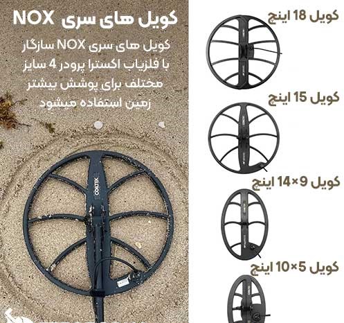 فلزیاب اکسترا پرو همراه با کویل استاندارد V12X (بیضوی 12×9 اینچ) عرضه میشود و با کویلهای جانبی V8X و V10X نیز سازگار است. همچنین میتوانید از کویلهای سری EQUINOX استفاده کنید و قدرت تشخیص را به سطح بالاتری ببرید.